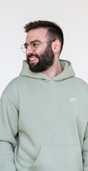 Именно она ведет проекты, подбирает те самые цвета и проводит встречи — она менеджер проектов и кофеман с любовью к вафлям.